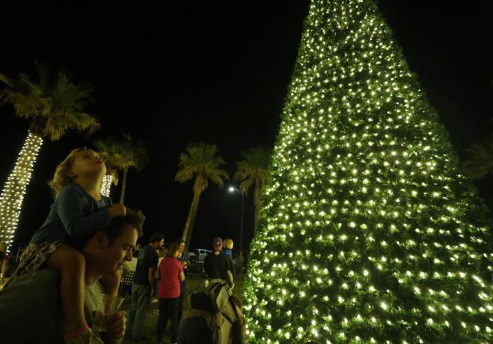 Shannon Butterfras Holds Vivian Butterfras While Watching Performances During The Hotel Galvez Annual Christmas Tree Lighting In Galveston On Friday, Nov.